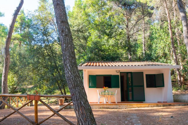 • Monolocali da 2 a 4 posti: con angolo cottura attrezzato, letto matrimoniale e letto a castello in un unico ambiente, bagno con doccia e veranda esterna, aria condizionata a pagamento;